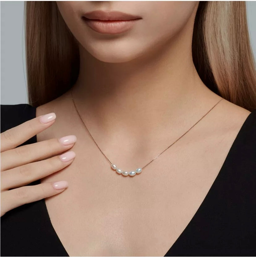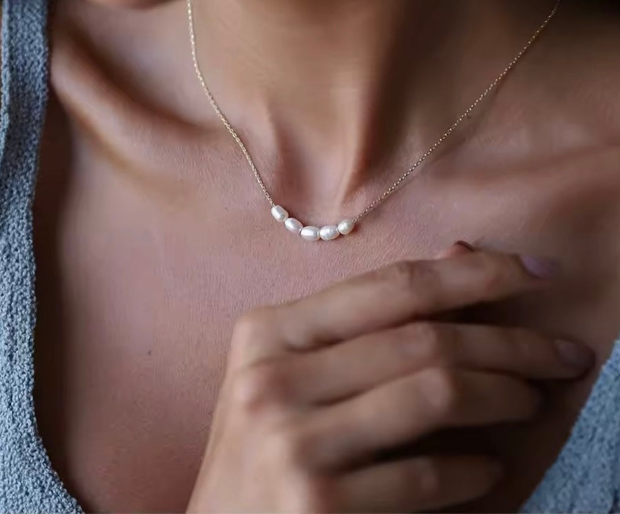 Sehr zarte und elegante Halskette mit echten Süßwasserperlen