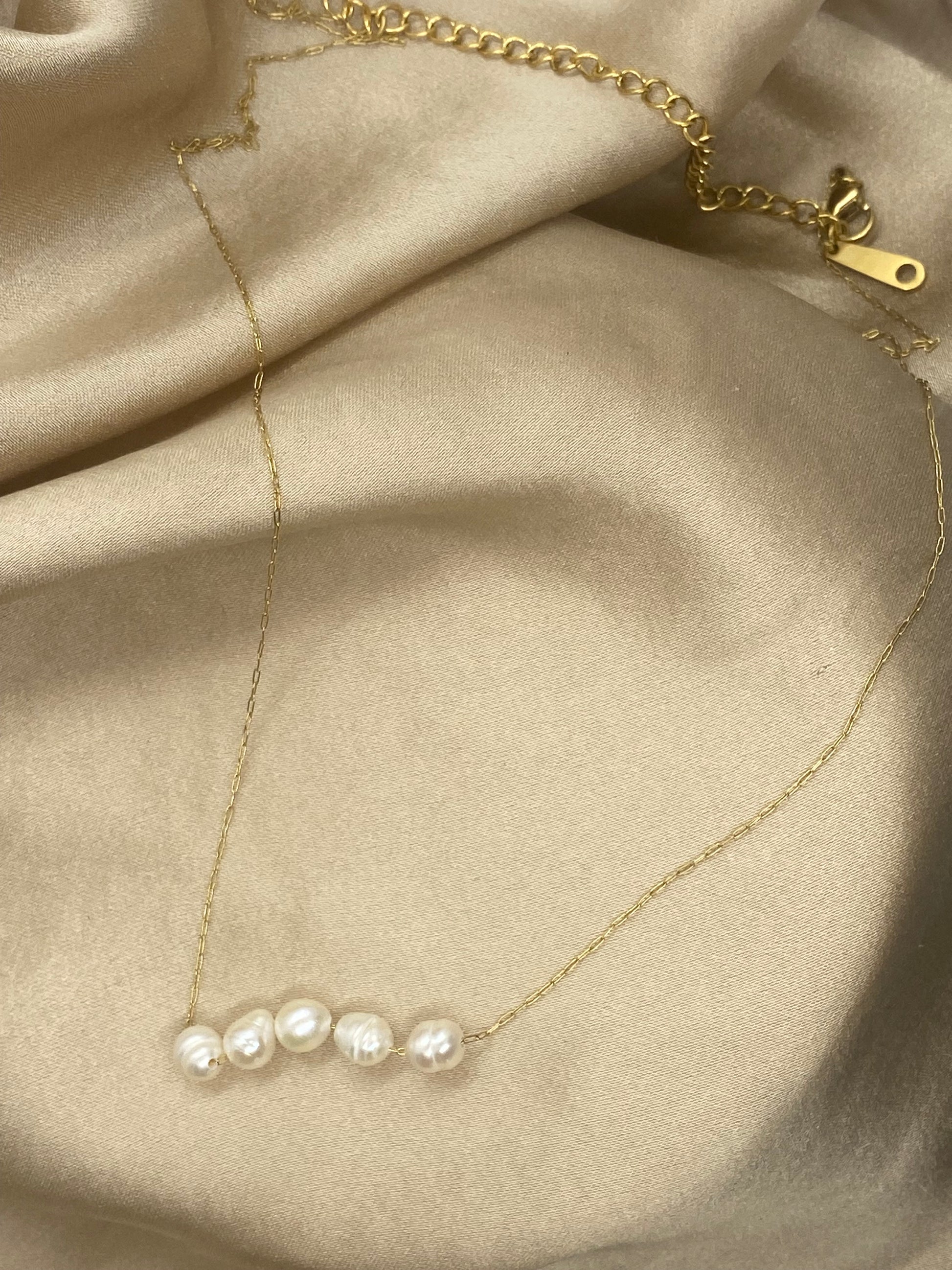 Feine Halskette aus vergoldetem Edelstahl mit echten Süßwasserperlen